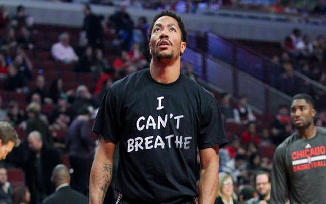 Chicago Bulls point guard Derek Rose wore a T-shirt that read Garner's infamous last words, "I can't breathe," during warm-ups against the Golden State Warriors on Saturday night.