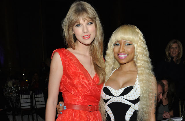 Making a "Bad Blood" joke would be low-hanging fruit. Needless to say, Tuesday's MTV Video Music Award nomination announcement touched off a small feud between Nicki Minaj and Taylor Swift—two people that, as the picture above suggests, have been friendly—and mirrored a lot of larger-scale debates about women's agency in showbusiness and intersectionality.