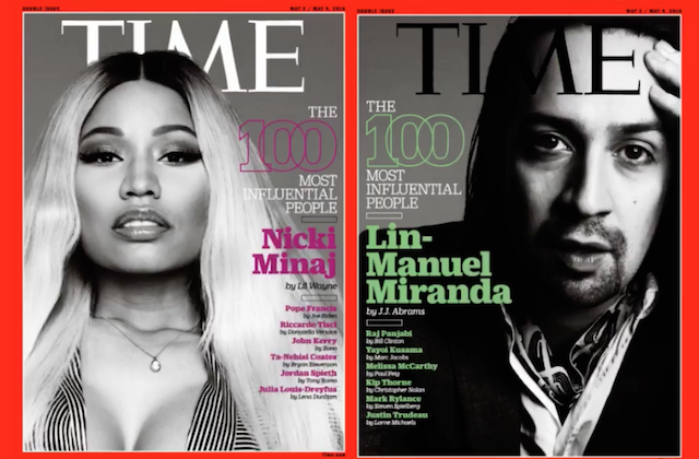 Nicki Minaj, "Hamilton's" Lin-Manuel Miranda and Indian actress and singer Priyanka Chopra all feature on their own covers, as do Leonardo DiCaprio and Christine Lagarde. Mark Zuckerberg and his wife Priscilla Chan appear together on the sixth one.