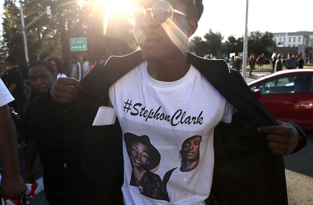 As Colorlines previously reported, two Sacramento Police Department officers—Terrence Mercadal and Jared Robinet—entered Clark’s backyard after receiving a call about a person breaking car windows nearby. Within seconds, the officers fired 20 shots at the 22-year-old father of two, hitting him with eight bullets—six of which entered his back. Officers said they started shooting because Clark was armed with a gun. But it was later discovered he was only holding an iPhone.