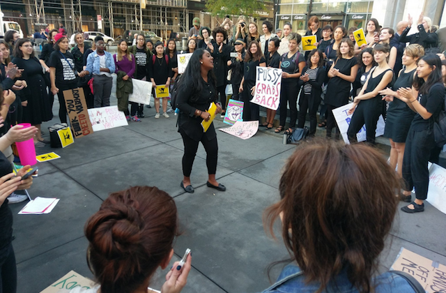 Women and allies in more than 15 cities—including Chicago, Miami, New York City, Oakland and Washington, D.C.—gathered outside local Trump campaign offices today (October 18) to “call for women to reject both the Republican nominee and the Republican Party more broadly and for members of the GOP to withdraw their endorsement of Donald Trump,” according to press release emailed to Colorlines.