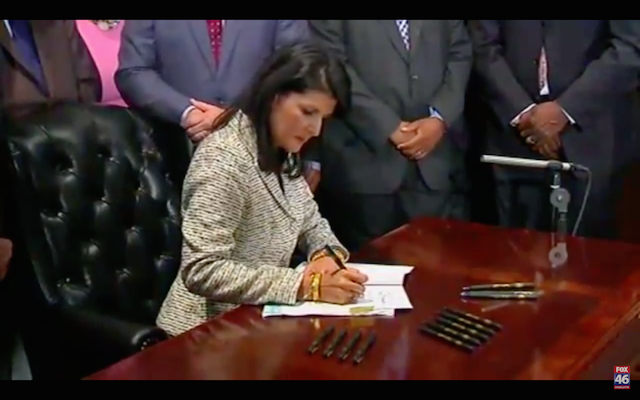 “Twenty-two days ago, I didn’t know that I would ever be able to say this again. But today, I am very proud to say that it is a great day in South Carolina,” Haley said, before signing the bill.