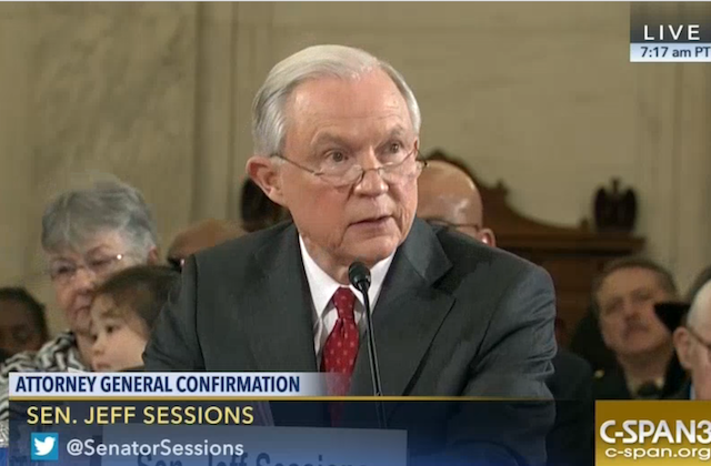Sessions has been the subject of much debate and protest. A Republican-led Senate refused to confirm him for a federal judgeship back in 1986 because he had a history of making racist remarks. Last week, the NAACP staged a sit-in in his Mobile, Alabama, office, calling on him to remove himself from consideration. Today’s hearings started at 9:30 a.m. ET, and there have already been three interruptions from protestors, including one who cut him off at 10:17 during his opening statement, yelling, “We have to keep these fascist pigs from getting into power!”