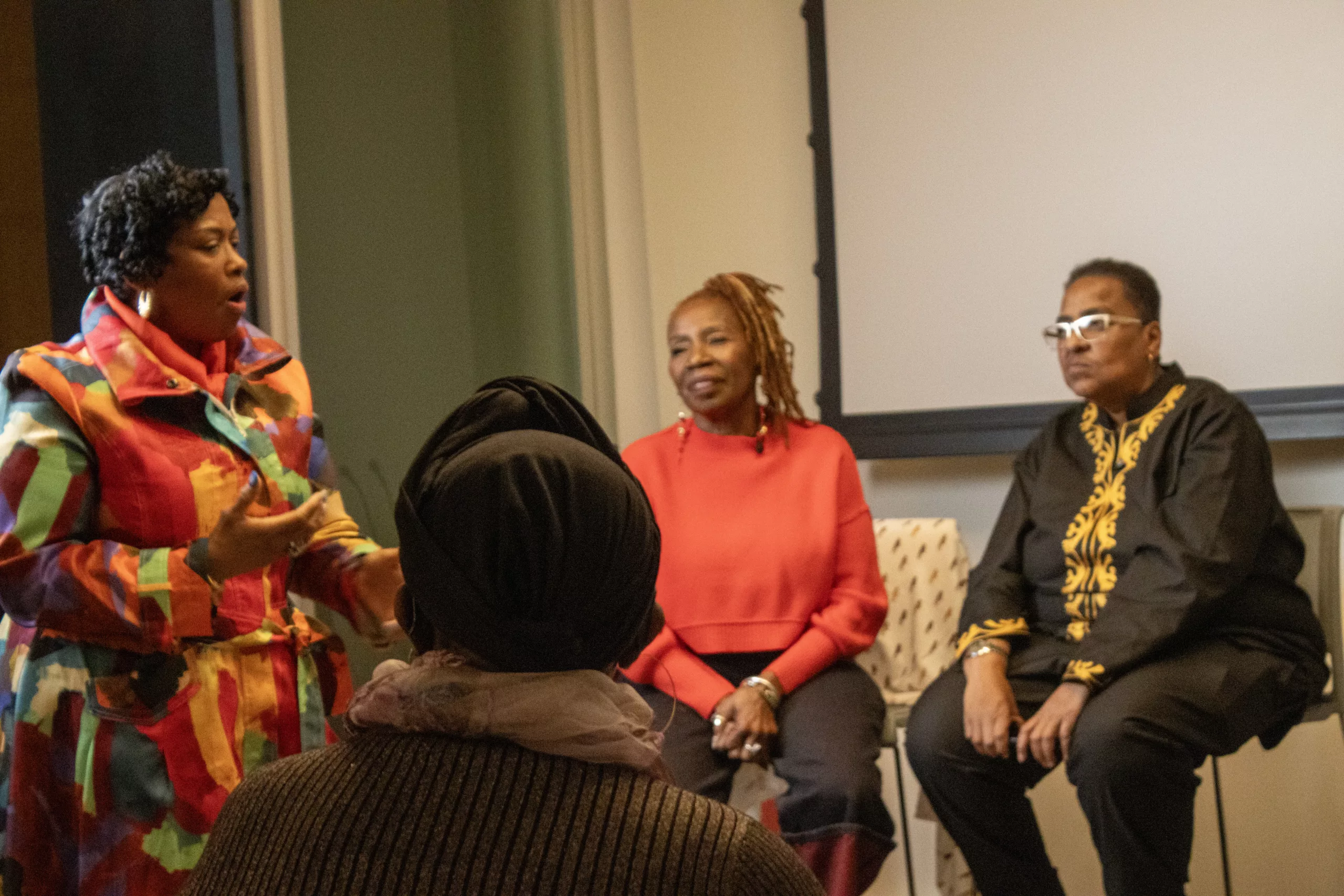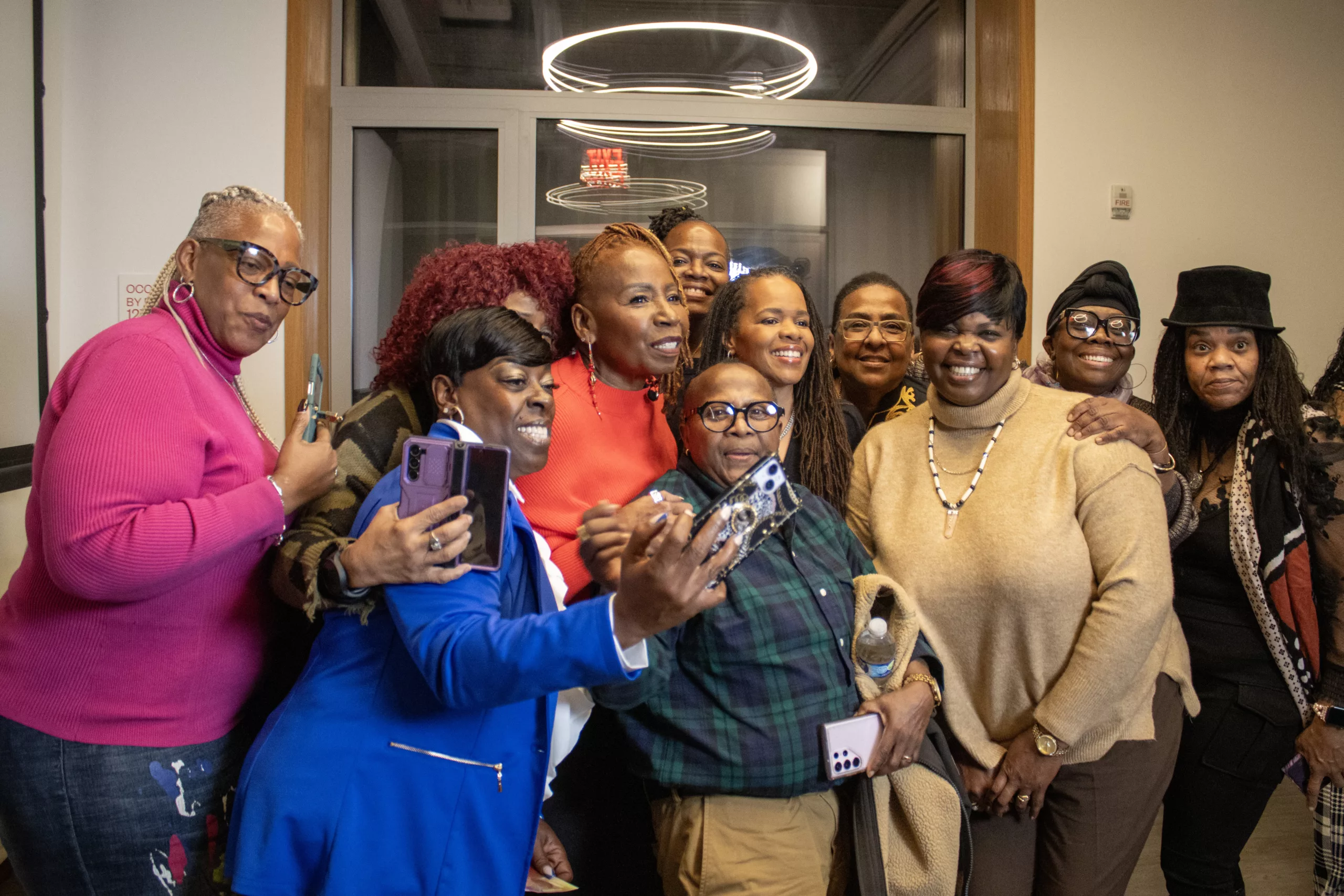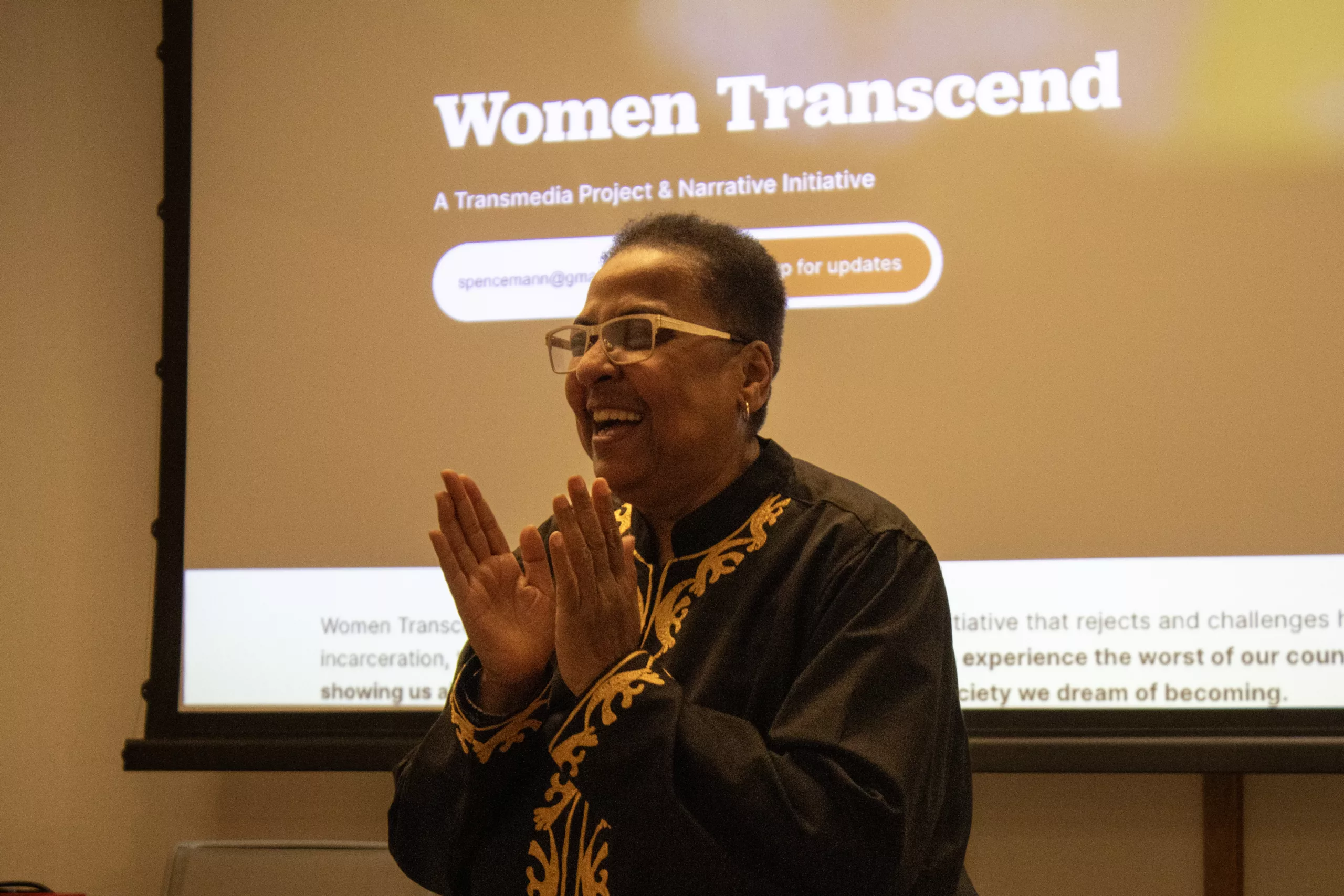 On March 1, 2024, Colorlines hosted a private and invitation-only screening of Women Transcend for formerly incarcerated women and their supporters. The event took place at Women Building Up in Brooklyn, New York. Many of the women that appear in the film were in the audience cheering each other on. The film was followed by a deeply-moving discussion hosted by the incredible Dr. Iyanla Vanzant with leaders Cheryl Wilkins, Ivy Mathis, Mama Glo, and Consuela Gaines. Photos by Rabia Syed Maral