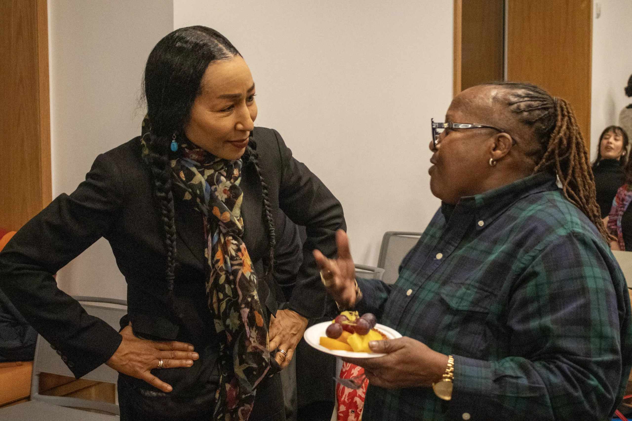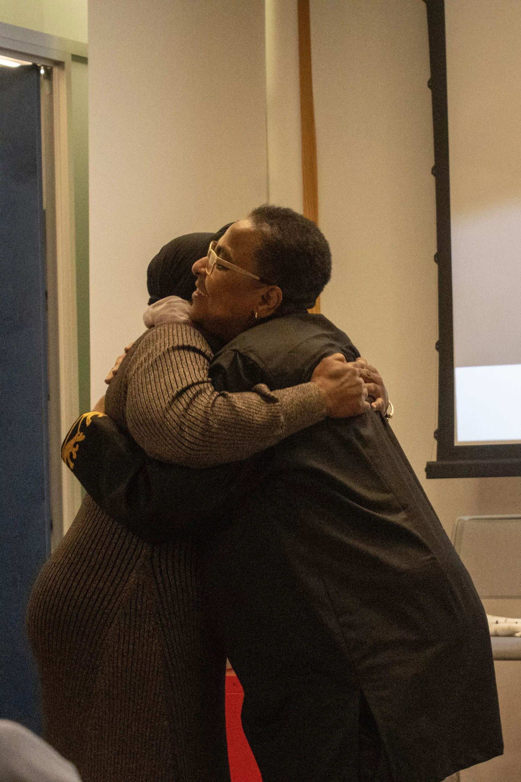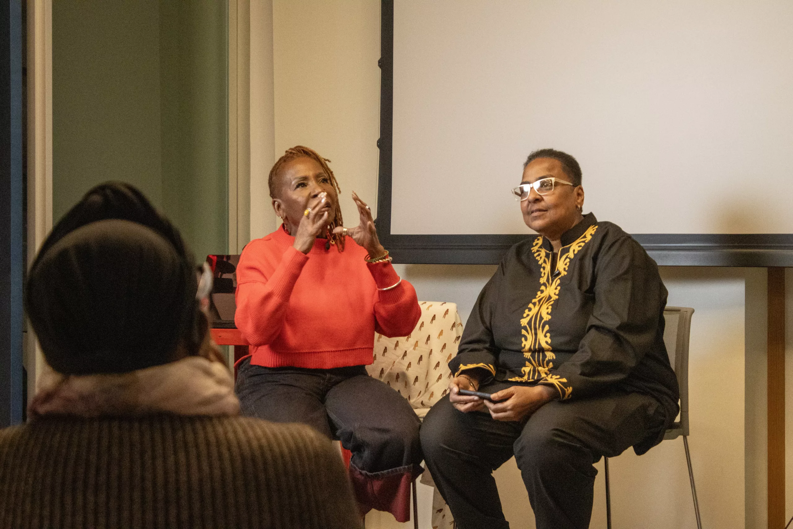 On March 1, 2024, Colorlines hosted a private and invitation-only screening of Women Transcend for formerly incarcerated women and their supporters. The event took place at Women Building Up in Brooklyn, New York. Many of the women that appear in the film were in the audience cheering each other on. The film was followed by a deeply-moving discussion hosted by the incredible Dr. Iyanla Vanzant with leaders Cheryl Wilkins, Ivy Mathis, Mama Glo, and Consuela Gaines. Photos by Rabia Syed Maral