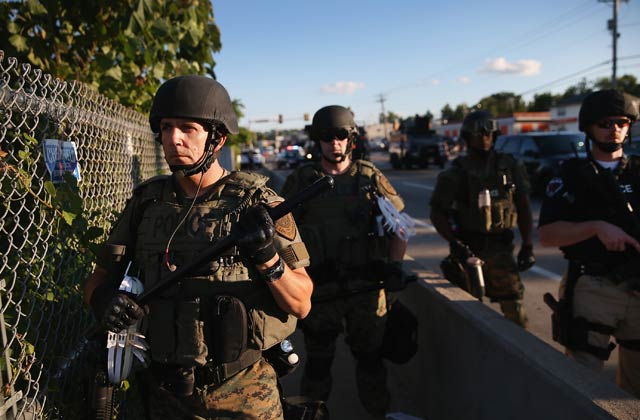 It's getting hard to distinguish Ferguson, Missouri, from a war zone these days--a war in which one side has its arms up in the air with signs demanding justice for Michael Brown, while the other is armed with more conventional weapons.