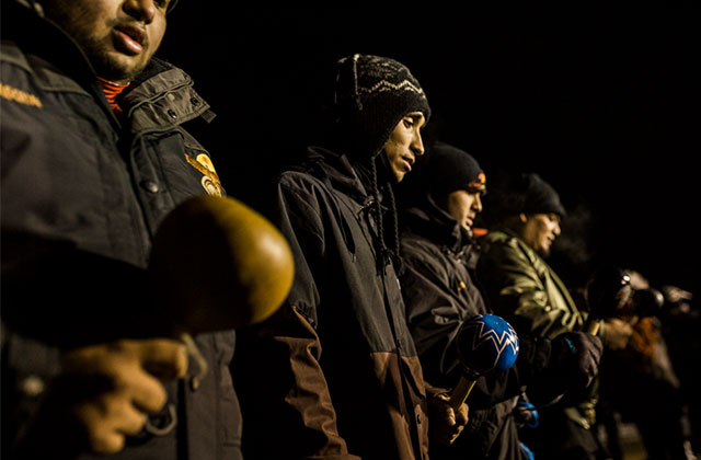 Twelve people are hospitalized for severe head injuries, reads a statement the Indigenous Environmental Network emailed to Colorlines. Two suffered from cardiac arrests with one unidentified elder in critical condition, reports Unicorn Riot. Four were treated for hypothermia after water cannons hit them during temperatures as low as 26 degrees Fahrenheit, reports Native News Online. The Morton County Sherriff’s Department denied using water cannons in an interview with NBC News, but videos contradict that statement. Police claim to have used water to put out fires, but Unicorn Riot countered that water protectors were creating fires to warm up from being wet.