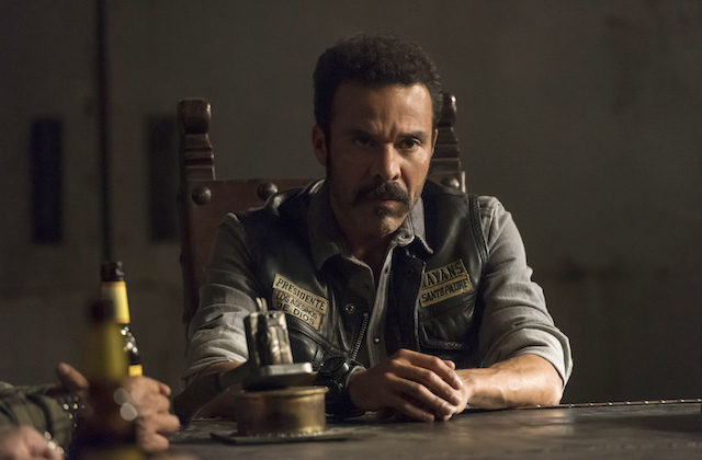 Bishop is very pragmatic. He deals with things with a heavy hand and heart. We see him in a vise, being squeezed in all directions—not only within his own club, where there’s supposed to be complete loyalty at the cost of losing your life, but also with the cartel. And not only with needing the cartels, but also being obligated to the cartels as a money source. Bishop is also very loyal to the Mayans national leader, Marcus Álvarez (Emilio Rivera, “Traffic”), his cousin. He’s wants Álvarez to be proud of him, but that’s a lot of responsibility. At the end of the day, pressure makes diamonds, and I think that by the time we get to the sixth or seventh episode, you’ll see Bishop spread his wings a little bit.