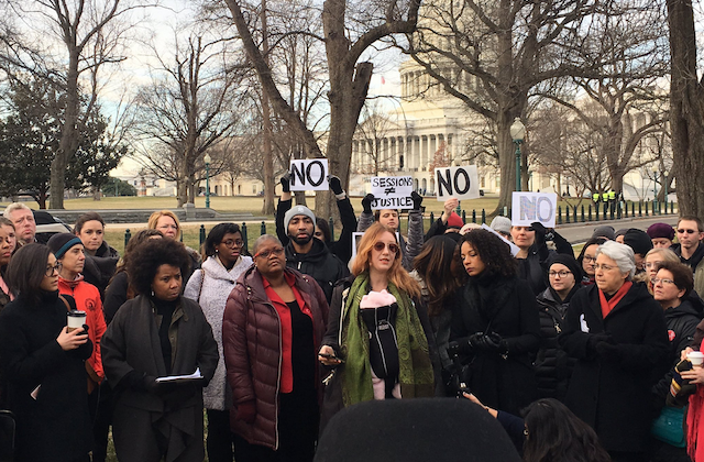 The organizers of the Women’s March on Washington are holding a rally outside the Senate this morning, imploring members to #StopSessions.