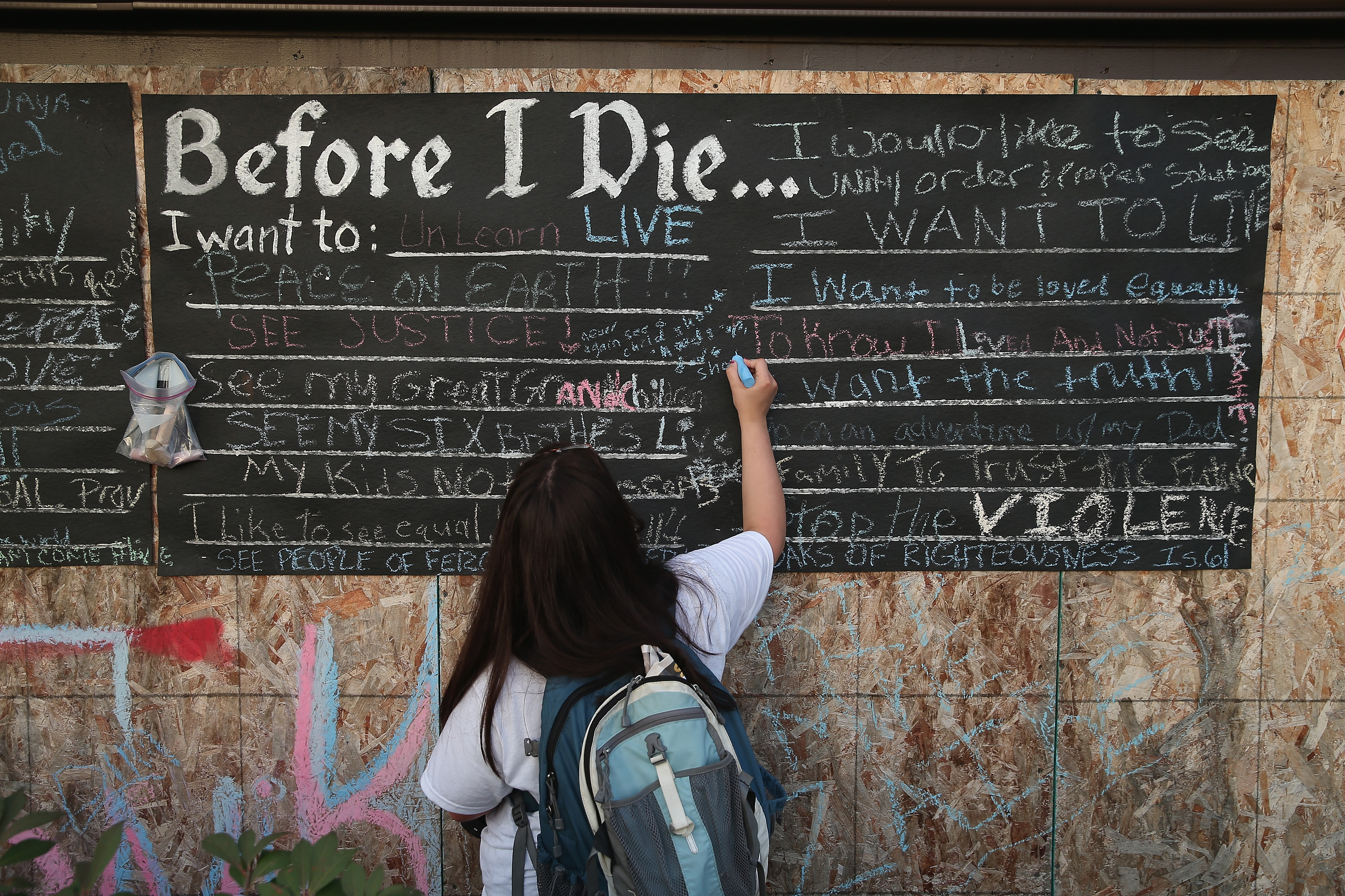 Stay here. Do whatever you can. Duck. Chant. Sob. Rail. But stay. The rest of us are running to and fro in your stead, spreading your words, your footage, your fears, your demands for a demilitarized, diverse police department. We are trying to make the world around you understand how wrong it is for police from multiple counties to bring in heavy artillery on ground and heavy surveillance in sky, in order to subdue the few of you brave enough to venture out each night in search of answers. We are trying to help you hold your county accountable for employing and protecting an officer who would flee down the same street where he opened fire on an unarmed boy and left him there, first to die, then to bleed in open view for several hour
