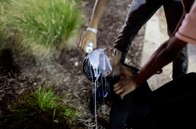 Police were out in full force this weekend, yet failed to get a gunshot victim to the hospital Saturday night. USA Today reported that Missouri's State Highway Patrol Captain Ronald Johnson claimed "police used tear gas in an effort to reach the wounded person, but that other protesters already had taken the shooting victim to the hospital." We're not really sure how tear gas would help get a victim to a hospital--and his community got him there instead. This is presumably the gunshot victim being lifted off the ground on Saturday: