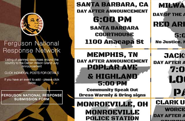 There are going to be at least 75 planned actions in response to the grand jury's decision, and the Ferguson National Response Network Tumblr is aggregating them. Most actions are taking place in public parks, outside of courthouses and on college campuses; users can click on individual actions for more information.
