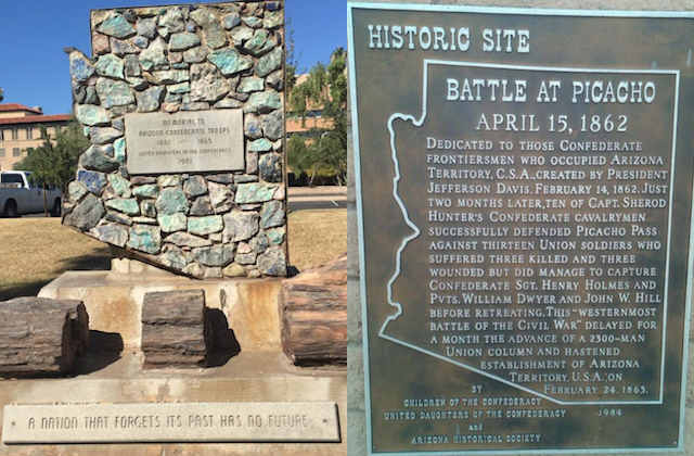The Republic explained Arizona's Confederate links in a January 2017 article. Confederate generals set up camp in Tuscon after a 1862 expedition, and their soldiers fought Union troops at the Battle of Picacho Pass that same year. War enthusiasts revisit the monument at the site of the battle and stage annual reenactments.