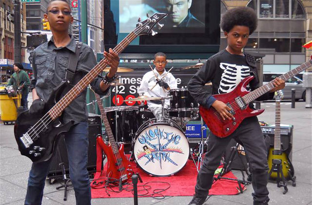 According to the NY Daily News, the group was discovered performing in Washington Square Park back in 2012 by Steve Jordan, drummer for Eric Clapton. That led to gigs playing across the country, including opening for Guns 'N' Roses in Vegas, a current spot on the Vans Warped Tour, a gig with Queens of the Stone Age next weekend, and even an opening slot on Coachella's main stage. "What started out as play dates went to Times Square and now this," said Dawkins' mother, Tabatha. "It's been one great thing after another." For you concerned mothers out there, don't worry; Dawkins said the boys are all solid students. "School work comes first. If their school work is not done, they don't play."