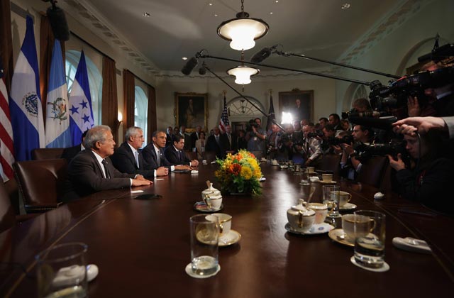 President Obama met with three Central American presidents at the White House Friday afternoon to address the influx of unaccompanied child migrants. According to The Hill, Obama claims to have come to agreement with El Salvador's Salvador Sánchez Cerén, Honduras' Juan Orlando Hernández, and Guatemala's Otto Pérez Molina to "address poverty and violence" in order to stem the immigration tide. Meanwhile, the administration is still attempting to get Congress to approve a nearly $4 billion to increase detention facilities and to hire additional immigration judges to hasten the deportation of children, which seems unlikely to happen before lawmakers take off for vacation at the end of next week.
