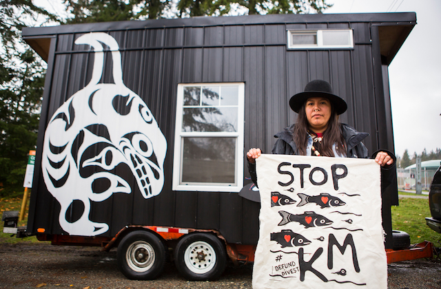 “We need to put our boots on the ground. That’s the only way we’re going to get change,” says Manuel. “When we put our bodies right in the direct path, that’s saying something very loud and clear to the investors and insurance companies that will eventually finance or insure these pipelines if we don’t stand up and show the direct risk that’s involved. What we’re showing when we are building these tiny houses is that we have the authority as Secwepemc to live where we want on our homelands and we can put them wherever.”