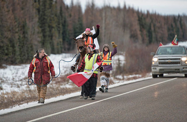 Three youth from the Woodland Cree First Nation in Saskatchewan, Canada, arrived to the Oceti Sakowin Camp at Standing Rock in North Dakota yesterday (January 10) after walking since November 26, 2016. This journey symbolized their solidarity with the #NoDAPL movement against the 1,172-mile long Dakota Access Pipeline set to cut through sacred territories of the Sioux people.