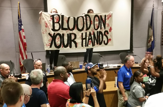 PHOTOS: City Council meeting breaks down as anger boils over.https://t.co/wZIDXo2gb1 pic.twitter.com/7uqLm60Knv