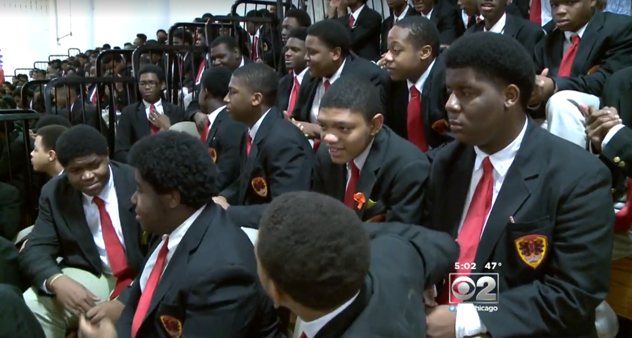 CBS 2 Chicago reports that Emanuel was at the predominantly-Black school—which famously has a 100 percent college acceptance rate—to announce the creation of the My Brother’s Keeper Cabinet. Near the end of the program, students were told to stand and recite the Urban Prep creed. Several decided to instead chant “16 shots!” which has been a popular refrain among Chicago protestors.