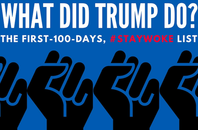 Our #StayWoke list on #Trump100Days. Download: https://t.co/krQeunVPMf. Actions listed will not #MAGA. #BrokenPromises #DrainTheSwamp pic.twitter.com/Z5yN4XpsQB