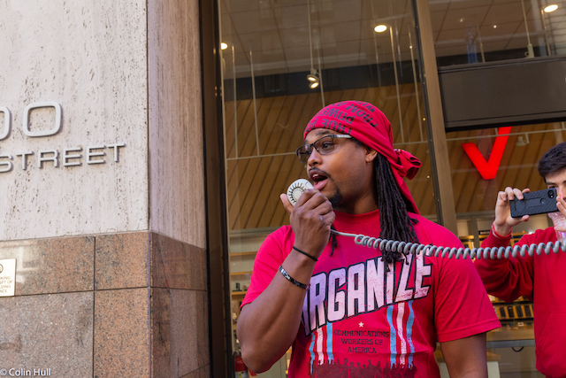 Hopkins described the rally at 100 Wall Street as “a pure display of solidarity and brotherhood” and added, “This rally wasn’t just about racial discrimination. We want Verizon to know that we see their greed and fraudulent activities that they allow to continue because it helps their bottom line.”
