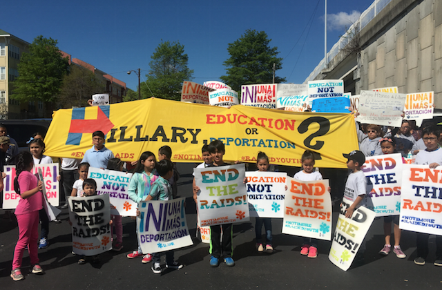 "Our children should be in school and not in detention centers," Lourdes Piñenda, whose daughter Kimberly Lizeth Piñeda Chavez was picked up in a raid, said during a rally outside the Democratic Party of Georgia's office. "We are here to demand that Hillary act on her campaign promises. The time to act on behalf of our youth is now."