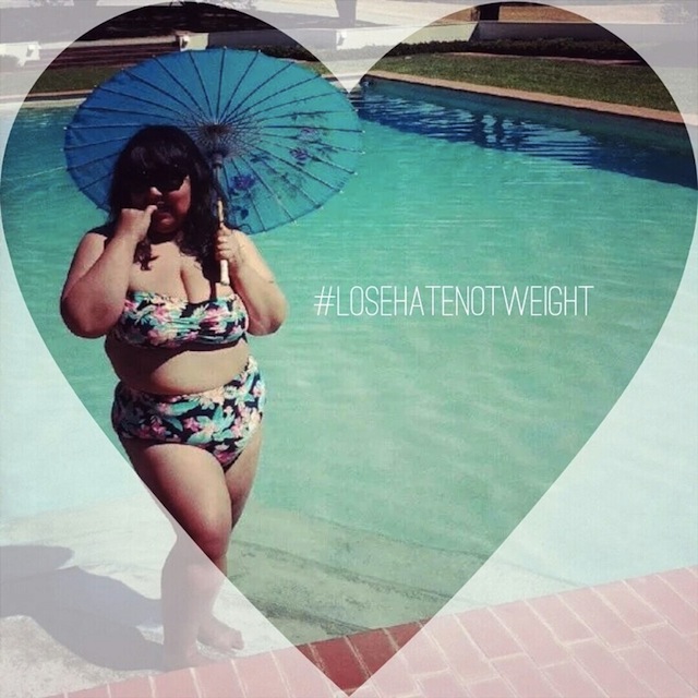 It seems a number of things are contributing to this trend. A major one, evidenced by the way I came across this topic, is social media. Laura Luna P, a self-described "queer fat Xicana femme, vintage purveyor, stylist and community builder," talked about how social media has shaped her relationship with her body: "Fat people of all genders are just like, 'We see it happening, we're gonna do it, we're gonna take selfies.' Our other fat friends are gonna be so affirming and you have this little cocoon of love around you." Combined with hashtags like #fat and the one created by Tovar, #losehatenotweight, selfies are elevating the visibility of women celebrating their bodies. "Social media allows for these women to congregate, interact with other," says Marie Denee, founder of the popular plus-size fashion blog Curvy Fashionista. They're like, "Oh you like bikinis too? Let's demand our bikinis!" In this way, social media can also have a direct impact on creating a new market for an item, like plus-size bikinis.