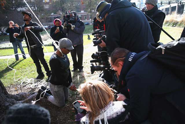 "I remember August 9th like it was 10 seconds ago," St. Louis reporter Kenya Vaughn said to a Washington, D.C., audience yesterday. "I was going about my everyday business of social media-watching...and I saw a man holding a sign on Instagram that said, 'The Ferguson police department just murdered my unarmed son.' And I was like, 'Ferguson, Ferguson!? Down the street, Ferguson!? Is this real?'" With that Vaughn sets the frame (11:00) for a truly excellent two-hour panel filmed at the National Press Club by C-Span on how news media covers race following the killings of Mike Brown and Eric Garner. The accounting comes at a time when #blacklivesmatter protests make race and racism a topical, mainstream conversation even as newsrooms have long been criticized for not hiring nor depicting diverse sources and talk-show guests. "Media can not cover race when it is unwilling to look at its own shops," panelist Roland Martin says (32:26).