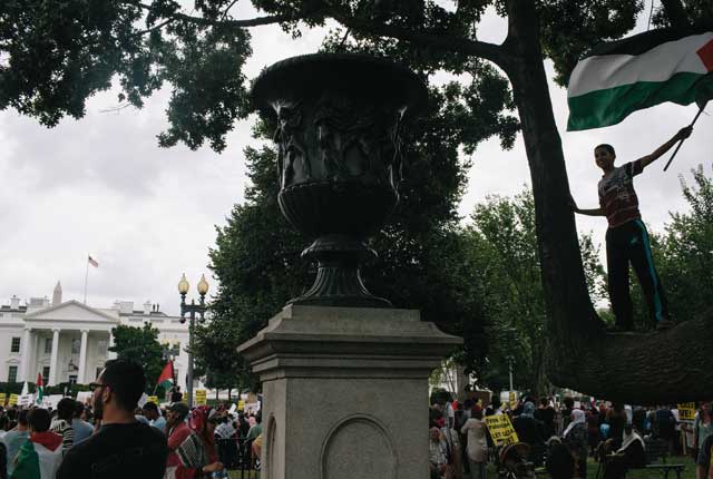 An estimated 10,000 people demonstrated in Washington, DC this weekend calling for an end to violence between Israel and Hamas in the Gaza Strip. The rally was billed as the largest pro-Palestinian march in the United States, Politico reports.