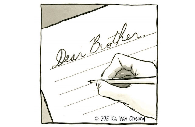 "Dear Brother" appears in "APB: Artists Against Police Brutality," an anthology whose sale proceeds support the Innocence Project, a legal advocacy organization on a quest to exonerate wrongfully accused and convicted peoples. Click here to purchase the anthology.