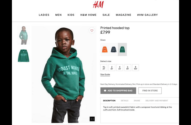 The page in question featured a Black child model wearing a hoodie that read "Coolest Monkey in the Jungle." The slogan points to a long and ugly history of racist associations between primates and people in the African diaspora. Critics like The New York Times columnist Charles Blow tweeted about the image, which was posted on the company's British website, yesterday (January 7):