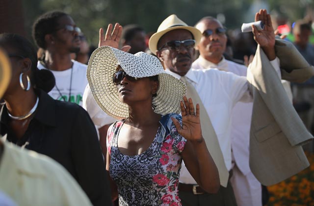 Michael Brown's funeral is underway at the Friendly Temple Missionary Baptist Church in St. Louis. Mourners made their way into the chapel today with their hands up.