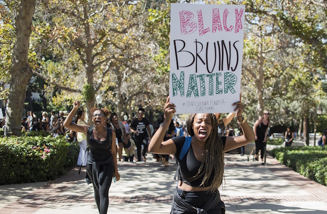 According to the Daily Bruin, UCLA's student paper, nearly 200 protestors dressed in black gathered for a rally on Thursday that included speeches from members of the university's Afrikan Student Union (who are responsible for organizing the protest) and one university official. Then the group marched to the university's Chancellor's office.