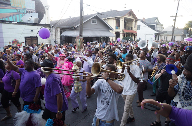 According to The Times-Picayune, thousands gathered in the famed Treme neighborhood for a "Purple Rain Day" second line parade (a brass band parade, traditional and native to the city's Black community) and funeral march. Many wore purple garb, and purple balloons bounced throughout the crowd.