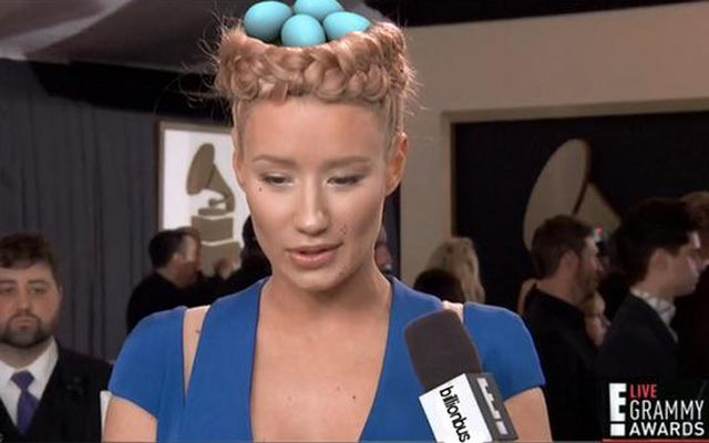 -- BuzzFeed (@BuzzFeed) February 9, 2015   so I guess: Iggy's hair is our first meme of the night or what tho #GRAMMYs pic.twitter.com/DjV9eyp4Jh