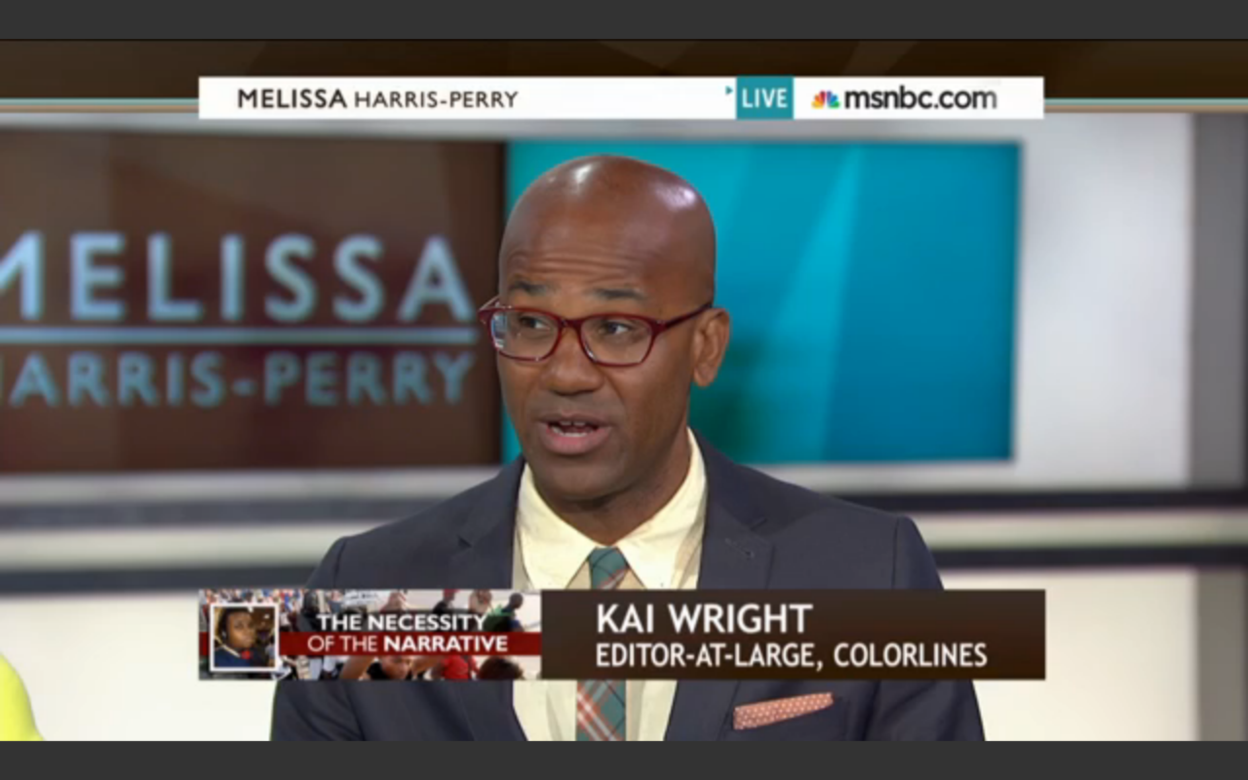Colorlines Editor-at-Large Kai Wright appeared on MSNBC's Melissa Harris Perry show to discuss the media's portrayal of Michael Brown, the racial dissimilarity of the Ferguson police to the people of the town, whether transparency is the same as accountability and whether trust can be built with the state.