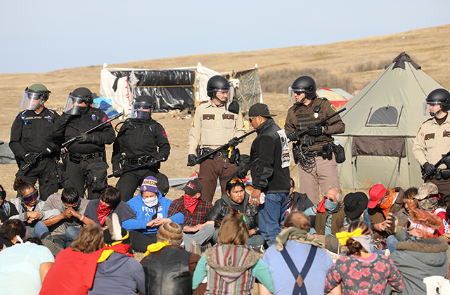 Yesterday (October 27), officers from at least five states—North Dakota, South Dakota, Minnesota, Wyoming and Nebraska—seized the latest camp built by opponents to the Dakota Access Pipeline. There were numerous arrests, as well as reported violence by officers against animals. The 1851 Treaty Camp was created Sunday, October 23, near the Cannonball River in North Dakota.