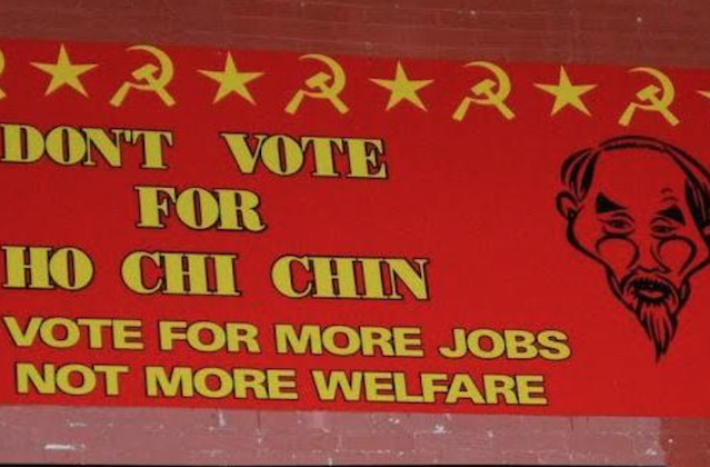 Ben Chin, the Democratic candidate in Lewiston's mayoral race, was the intended target of two signs put up on private buildings this weekend that use communism-affiliated imagery and a caricature of an Asian man. The signs read, "DON'T VOTE FOR HO CHI CHIN" and "VOTE FOR MORE JOBS NOT MORE WELFARE"—obvious allusions to both Chin's race and progressive political views:
