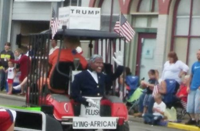 An Indiana resident faced accusations of racism for a Fourth of July parade float that featured an effigy of President Barack Obama in a toilet accompanied by a sign that read "Lying African." But float creator Don Christy told IndyStar yesterday (July 6) that he only intended to protest political incorrectness.