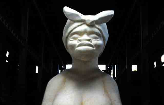 I caught the eye of the few people of color, we talked and shook our heads at the jokey antics of white visitors. We felt invisible, and our history was too. It stung us and we wanted to leave. I forced myself to go the backside of the statue and saw there what I expected to see, white visitors making obscene poses in front of the ass and vulva of the "Subtlety." A heavy sigh fell out me. "Don't they see that this is about rape?" I muttered as another visitor stuck out his tongue.