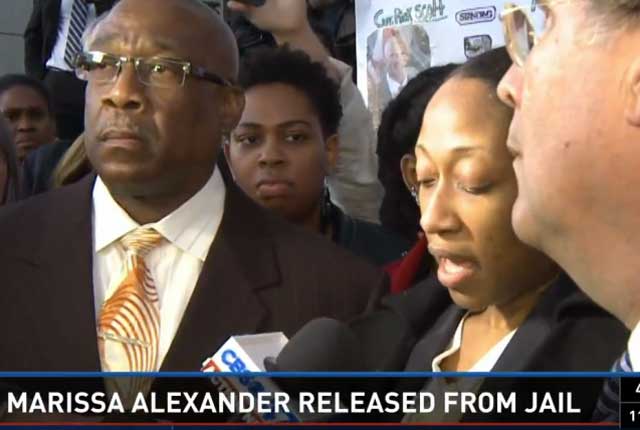 After serving three years in jail, 34-year-old Marissa Alexander went home yesterday and is now on house arrest. A judge denied the prosecutor's request for an additional two-year sentence in the case of the Florida mother who in 2010, and nine days after giving birth, fired a gun near her abusive husband and allegedly his children. Alexander subsequently used Florida's "stand your ground" law as her defense. No one was injured but a jury, MSNBC reports, convicted her in 12 minutes. Alexander was initially sentenced to Florida's minimum, 20 years, and could've faced 60 years in prison. The outcome for Alexander, an African-American woman, provided a stark contrast to that of George Zimmerman, a white Hispanic male, who in a 2013 trial also used the "stand your ground" law in, ultimately, a successful defense in the killing of unarmed 17-year-old African-American, Trayvon Martin. Florida's "Stand Your Ground" law, passed in 2005, has been widely criticized for excusing vigilantiism and uneven application but it remains on the books.