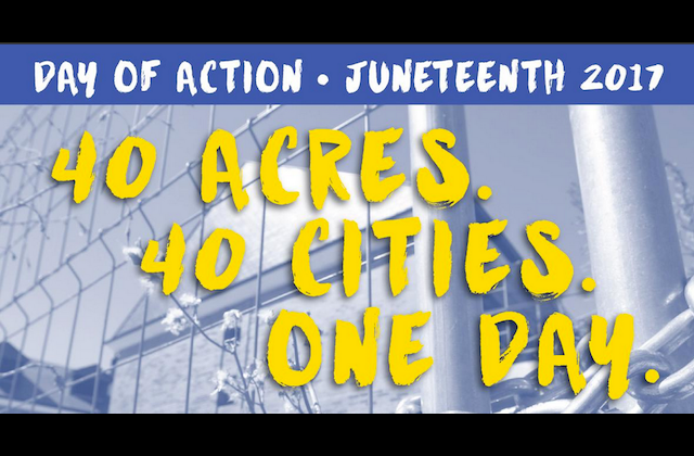 From vacant lots to empty school buildings, Black people across the country will take back land that should be used for the good of the people: land that Black people have been historically been denied access to. Through national efforts to collectively reclaim 40 acres in 40 cities, the actions aim to confront the institutions that have been built off the extracted wealth of Black people and Black land, and the individuals who have profited from them.