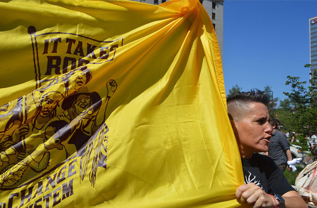 “All along the route with powerful art and visuals,” a press release sent to Colorlines reads, “It Takes Roots organizers will lift up the message that Berta Cáceres did not die when she was assassinated, she multiplied in the thousands of activists demanding justice for all communities' struggles for land, water, and human rights.”