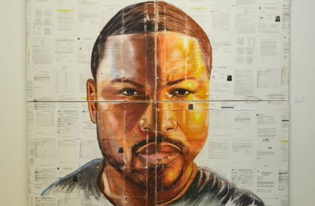 "We firmly believe that formerly incarcerated individuals not only have a right to fully return to society, but can offer innovative solutions to one of the most pressing issues of our time," Philadelphia artists Jesse Krimes and Russell Craig wrote in a joint statement to Mic. Craig previously worked with the Returning Citizens Project to create and exhibit the self-portrait above, which was drawn on a canvas covered with his old prison documents and parole papers. He and Krimes are two of the fellowship's inaugural recipients.