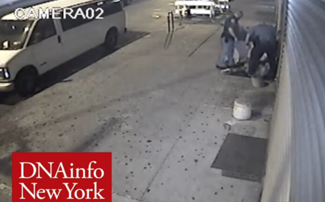 Yet another example surfaced yesterday of police violence captured on video. Street-camera footage obtained by DNAinfo shows two New York City police officers alternately punching a young black man, Kahreem Tribble, with their fists and a gun on the night of August 29. The 16-year-old, who had been running, had already stopped and raised his hands in apparent surrender. He was arrested for marijuana possession.