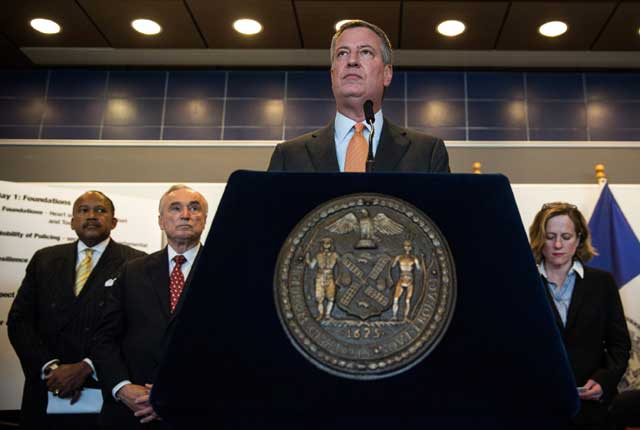 Set to a backdrop of ongoing protests, New York City's police union and mayor are publicly at odds over the grand jury's decision not to charge officer Daniel Pantaleo in the video-taped homicide of Eric Garner. Elected on a progressive platform, Mayor Bill de Blasio heads not only the country's largest city but its policing laboratory. New York City is where policies like COMPSTAT and "broken windows" got their start. De Blasio also has a bi-racial son with his African-American wife, Chirlane McCray. And it's partly from that personal lens that de Blasio framed his 20-minute response to the grand jury's decision at a press conference this Wednesday. The result is a speech that whatever its limits, strikes an unprecedented note of empathy for the fear felt by black and brown families: