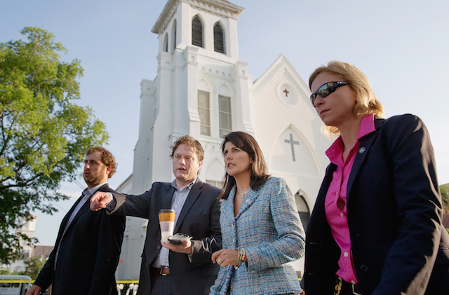 Haley made more news in the massacre's wake when she stated that she would support the death penalty for Dylann Roof, the man who perpetrated the massacre in Charleston. The statements from her and Graham, the first Republican presidential candidate to stand behind the flag's removal despite previously calling the flag "part of who we are," appear strategic given South Carolina's importance in primary elections.
