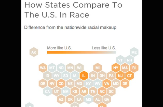 The Midwestern state was deemed the most-representative racially, as indicated by the graphic above. The article explains the news organization's methodology for analyzing race demographics: