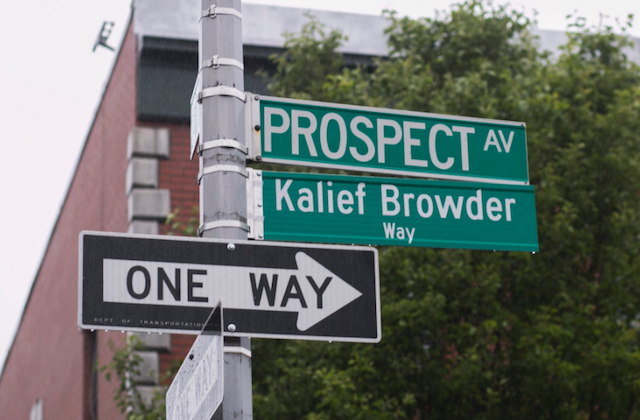 Browder's family members joined New York City Council member Ritchie Torres and speaker Melissa Mark-Viverito in the Bronx yesterday (May 25) to unveil "Kalief Browder Way." An emailed city council press release identifies the renamed block as the northwest corner of East 181st Street and Prospect Avenue in the city's northernmost borough, which both Torres and-Mark Viverito represent.