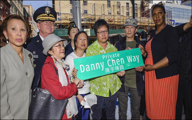 Danny Chen, a 19-year-old Chinese-American solider who was relentlessly bullied and ultimately committed suicide in 2011, has been immortalized in New York City's Chinatown. City officials unveiled Private Danny Chen Way this week.